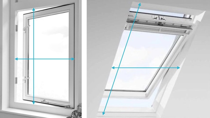 Bij een dakraam is er vaak te weinig ruimte in het kozijn waardoor er op de latten op het plafond gemonteerd zal gaan worden. Pak daarom bij een dakraam de totale opening tussen het kozijn in zowel de breedte als hoogte.