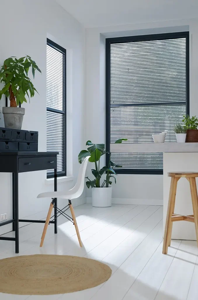 De lamellen zijn naar boven en onderen te kantelen door een nauwelijks zichtbaar handgreepje en is verkrijgbaar in twee lamelbreedtes, 30 mm of 40 mm. Op die manier profiteer je van optimale controle over privacy en lichtinval.